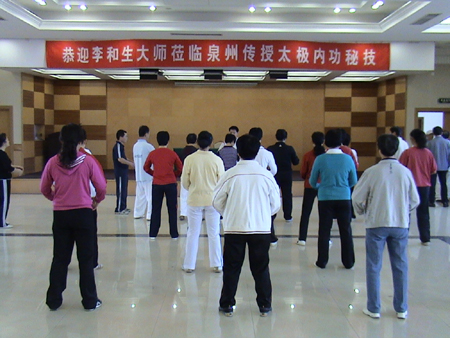 2007年“五一”和2008年“十一”间,李和生大师曾两次应邀来泉州举办太极内功推手培训讲座,介绍了太极内功练法第一承功夫(以腰带手,练腰)和第二承功夫(以气运身,练气),参加学习人员近百人。