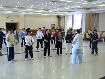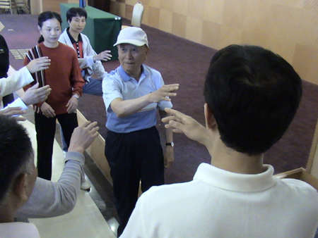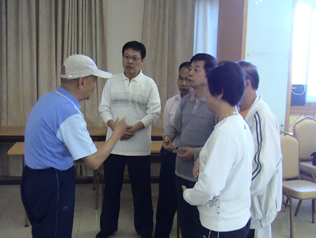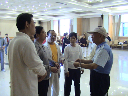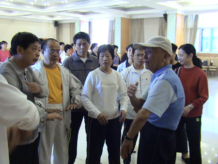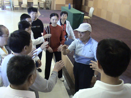 北京太极拳名家李和生大师应邀于4月28日至5月2日来泉州举办太极内功讲座。培训讲座主要内容是传授太极内功第三承功夫----以意领气。李大师与参学学员一对一地传授第三承功夫--练意念,并系统介绍了内功推手的听劲、问劲、发劲、错劲、分劲及无极桩、养气桩(坎中满)、松功桩(离中虚)、虚引手等功法劲法。