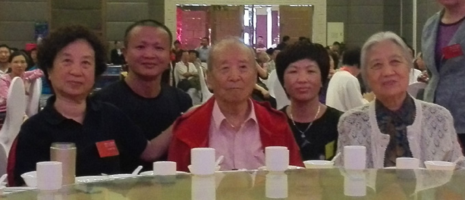 弟子庄锡成夫妇在恩师九十华诞盛宴与恩师、师母、师姐合影