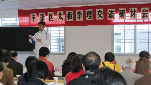 2010年11月28日,丰泽区太极拳协会举办“太极拳理交流研讨会”。研讨会就太极拳竞赛套路的训练方法和演练要求、杨式内功太极拳老六路的阶段练功体会及太极拳理的理解和应用等方面进行交流研讨。晋江市太极拳老六路研究会、鲤城区太极拳协会、惠安县太极拳协会组队参加会议,以及厦门市、德化县和丰泽区的拳友共130多人参加交流研讨会。会上,丰泽区太极拳协会会长金炳川先生致欢迎词,泉州市太极拳协会会长苏天赐先生作讲话。研讨会由丰泽区太协马红梅女士主持。