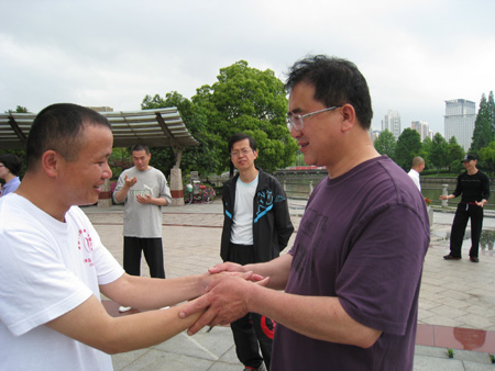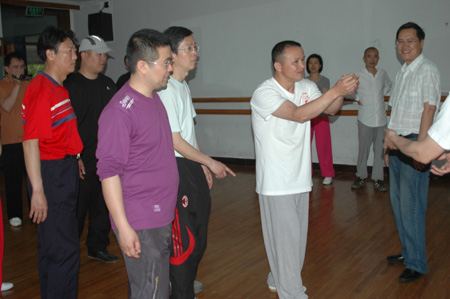 6.庄老师与台湾拳友搭手体验“以气带手”
