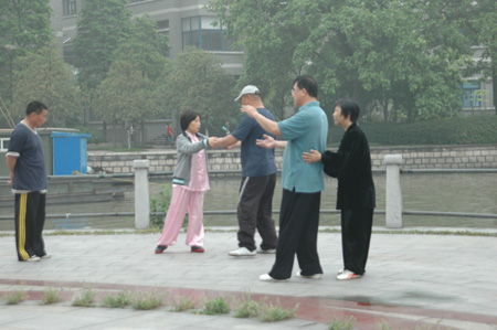 14.庄老师与杭州推手爱好者搭手体验“以气带手”