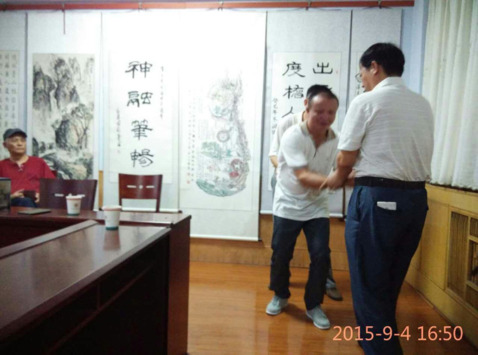 2015年9月4日,庄锡成先生应邀参加山东省泰安市泰山景区管委会老体协李和生内功老六路交流活动。30多名泰安拳友参加。