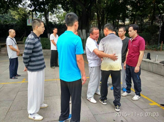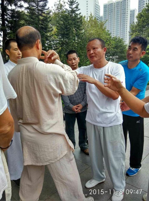 2015年11月7日至13日,庄锡成先生应邀到广州市开展李和生传杨式内功太极拳老六路培训活动。来自山东、浙江、广西和广东省广州、深圳、梅州、湛江、东莞等地拳友17人参加交流培训活动。 培训采取多媒体讲座,分析王宗岳《太极拳论》对太极拳的理论指导意义及功用,着重介绍李和生大师独特的武学理念和拳理功法特点,让拳友系统认识太极拳练腰阶段的重要性和练习方法。 培训活动注重突出“内运”重点,剖析老六路拳势动作要点。详细讲解并手把手辅导拱腰撤腰动作要领,让拳友感受拎腰、转腰、滚腰、松腰的内在运动之秘。培训还对去年夏季班部分拳友进行练气辅导。教学中,让拳友反复体会太极拳内运特点,坚定练腰练拳的信心。介绍了无极桩、拗动六环功和脊柱放松功等练腰阶段的辅助功法要领,介绍了练气阶段的沾黏劲、投针劲、搓打劲、弹抖劲及养气桩、收功收势等辅助功法。 培训活动在当地拳友引起积极反应,先后多名内家拳、外家拳和太极推手拳友参加友好交流,老六路拳理功法深得武术同道的赞同。 参训拳友学习认真,训练刻苦,受益匪浅。