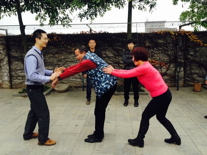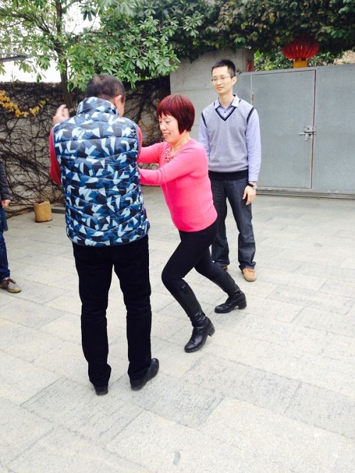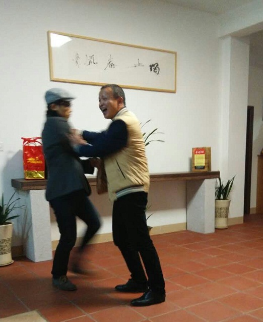 庄锡成与厦门新拳友韩女士搭手体会太极拳