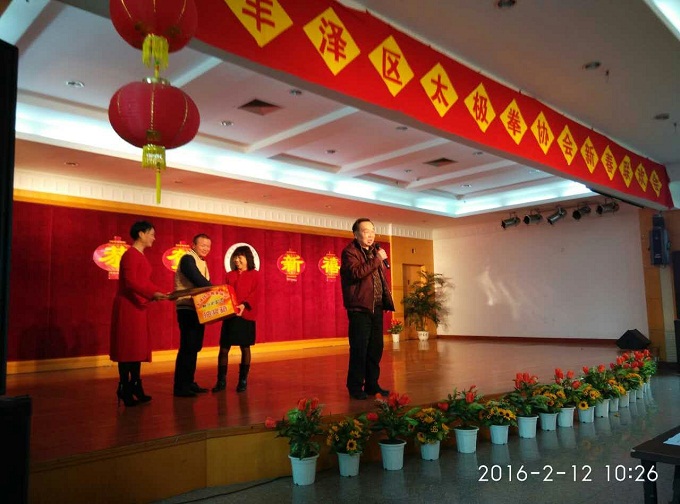 2016年2月12日,正值正月初五迎财神的好日子,丰泽区太极拳协会举办新春联欢会。领导、嘉宾、拳友欢聚一堂,亦拳亦舞,亦歌亦曲,会场喜气洋洋,节目高潮迭起,掌声笑声欢呼声,个个喜上眉梢。联欢会邀请了原福建省文化厅厅长庄晏成先生、原泉州市人大副主任颜伟劲先生、泉州市太极拳协会会长苏天赐先生、丰泽区体育总会常务副会长洪月辉女士参加,并为会议现场抽奖助兴。