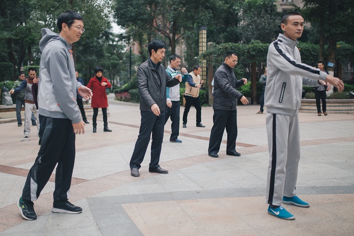 揭牌仪式后,拳友们一起在小区广场演练老六路,并开展友好交流。