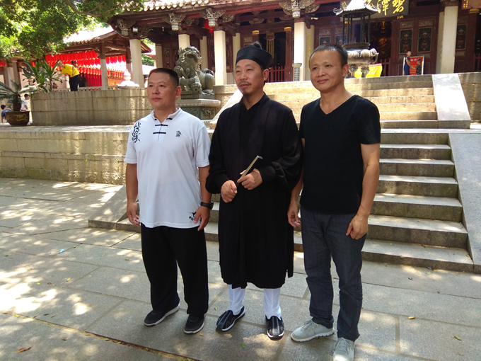 2017年7月19日上午,天高云淡,烈日炎炎。武当三丰派第14代掌门人钟云龙道长应邀来福建泉州交流。泉州部分武术爱好者陪同座谈交流。钟道长此行受泉州老六路同门师弟杨胜丹先生邀请安排。 道长泉州行 钟道长在泉州拳友陪同下先后走访参观了泉州少林寺、泉州武当山真武庙和泉州清源山云顶文化创意园。钟道长询问了解了少林寺建设发展情况,并在少林寺广场观看了泉州拳友即兴演练的各派武术。随后,参观云顶文化创意园,与拳友共进午餐。席间,泉州武协秘书长张晓峰先生简要介绍泉州传统武术的发展情况。钟道长兴致地谈及传统武术功法,指出“功法是传统武术的精髓”,由于市场经济和武术商业化的影响,让传统武术趋向套路表演。大家各抒己见,积极交流对传统武术套路、功法的认识和体会。 庄锡成先生向钟道长介绍了道教圣地“清源山”的历史由来,简要介绍了李和生传内功太极拳老六路功法及宣传推广情况。钟道长充分肯定太极拳修身养性、延年益寿的功效,指出太极拳的推广与传承,义务普及,造福百姓,适当收费亦无可厚非。 午后,钟道长饶有兴趣的问及泉州武当山,拳友又陪同武当宾客前往泉州武当山,参观真武庙。 道长印象 钟云龙,一身素色道服,一脸和蔼可亲,一身轻盈灵动。初识钟道长,可感知其为人厚道,处事低调,典型的中国道家形象人物。 初次接触钟道长,面谈交流三小时,印象深刻。观其貌,其相平淡,冷静沉着,虽不健谈,但有问必答;听其言,谈吐温雅,低浑的嗓声透着清明,极富磁力;见其行,登梯如飞,三级而上,身轻如燕;感其威,掌柔如絮,身外有“身”,色空之威。