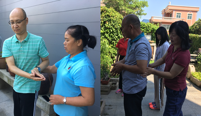 9.惠安拳友吴淑珠、深圳拳友黄世杰辅导拳友体会练习