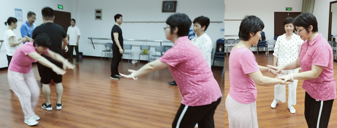 拳友杜燕,春节前找林建老师学习了老六路第一路拳架,虽然也教了找腰、拱腰,但她重点放在拳架的练习。这次参加交流,仅仅练习了两天拱腰,就感到精气神更足,气力增加。此次面授激发了她练太极拳的热情。“我走路时也尽量练习拱腰,即使走路多,膝盖也不会酸痛。每天练习拗动六环功,感觉神清气爽。”因此,她深刻感受到“学习太极拳,还是要面授”。并马上申请加入太极庄学习。