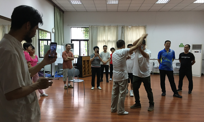 交流中,还有师从其他流派的拳友参加。拳友孙处长和郭总都是第一次参加老六路交流活动,但他们体会感触很深,都认为庄老师的教授方法独特而有效。孙处长说:“参加培训后,对‘松有新认识,特别是拱腰,体会到虚灵顶劲、气沉丹田、脊椎尾闾的中正安舒等要领,以意导气,以气运身,体验到通体舒服和泰然自若。”郭总说:“此次交流是一次很好的太极拳体验。老师和师兄弟言传身教,为大家提供了一套可以进入太极拳的简明方法。通过与庄老师和拳友们搭手交流,体验到太极的真东西。腰部的变化,尾闾的运动;松出力量来;用意不用力;真正的起势……第一次参加,感触很多,说也说不完,只能不断的摸索,尽可能的把体验的东西融入身体里。”