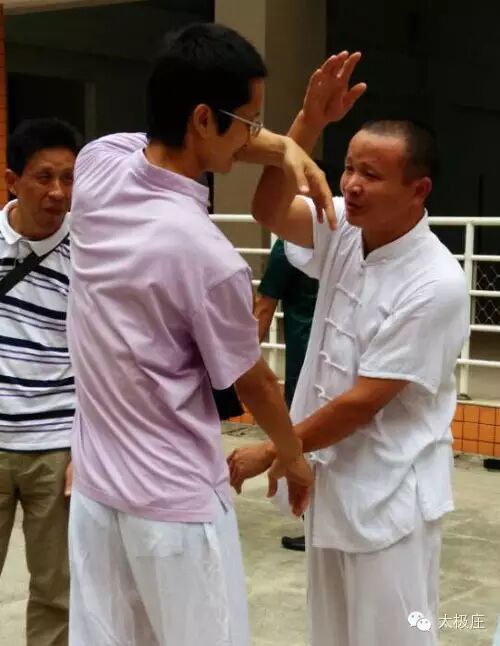 首先要找到明师。明师自己“内里有东西”,自己明白,还能用浅显的道理、很通俗的语言讲出来,并且能通过身授(与你搭手、让你在他身上摸等),让你的身体感受到,什么是“内里的东西”,让你也明白。在泉州学拳时,庄师曾说过,学太极的密诀在师父身上。这是庄师自己学拳的经验之谈,庄师当年是这样学拳的,现在教拳也让我们体验身授。