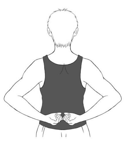 我让他双手握拳,拳心虚空,贴在肾腧位置,利用膝关节的上下抖动进行反复摩擦,双拳不动,双脚随着身体抖动轻微起踮,感觉到腰部轻微发热为止。三五分钟后,这位学生高兴地说,“从来没感觉这么轻松过,这个方法真有效!”一时间,课堂上沸腾起来。