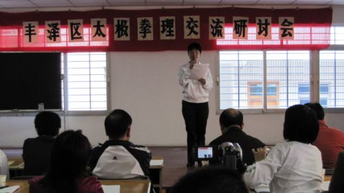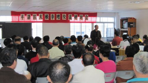2010年11月28日,丰泽区太极拳协会举办“太极拳理交流研讨会”。研讨会就太极拳竞赛套路的训练方法和演练要求、杨式内功太极拳老六路的阶段练功体会及太极拳理的理解和应用等方面进行交流研讨。晋江市太极拳老六路研究会、鲤城区太极拳协会、惠安县太极拳协会组队参加会议,以及厦门市、德化县和丰泽区的拳友共130多人参加交流研讨会。会上,丰泽区太极拳协会会长金炳川先生致欢迎词,泉州市太极拳协会会长苏天赐先生作讲话。研讨会由丰泽区太协马红梅女士主持。