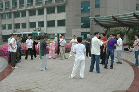培训期间,杭州推手爱好者及牛氏太极传人也慕名旁听,并兴趣地与拳友交流。