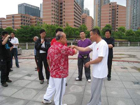 6.庄老师与台湾拳友搭手体验“以气带手”