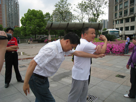 14.庄老师与杭州推手爱好者搭手体验“以气带手”