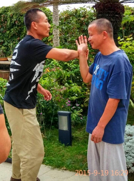 2015年9月庄锡成与全国博击冠军李斌老师交流拳艺 |