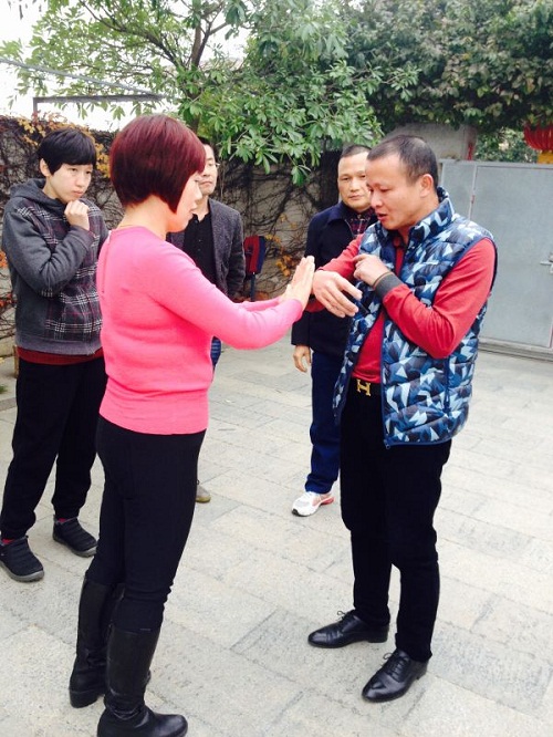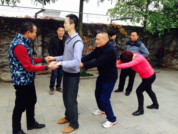 庄锡成与厦门新拳友韩女士搭手体会太极拳