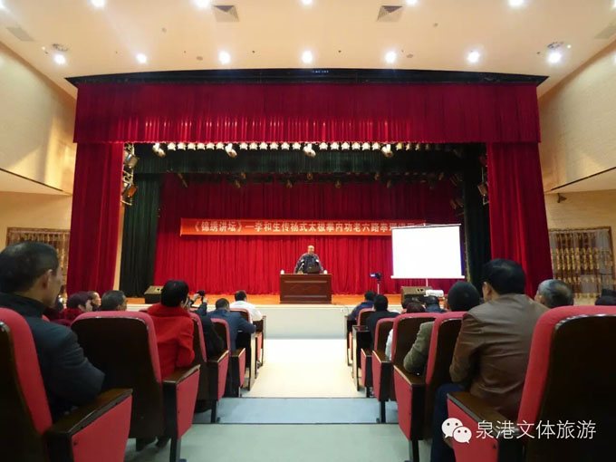 2016年3月,福建省泉州市泉港区太极拳协会成功举办首期李和生传杨式内功太极拳老六路培训班。特邀庄锡成先生担任授拳老师。首期培训班来自厦门、泉州、南安、惠安和泉港等地拳友23人参加。培训活动得到政府主管部门文体局的大力支持。 教学辅导站位于泉港区政府新址对面的“泉港区文化中心”。文化中心集文化馆、图书馆、博物馆、方志馆、城市规划展览馆及青工妇活动中心于一体,场所宽敞,条件优越,功能强大,有多媒体小礼堂、多功能训练厅。中心毗邻锦绣公园,空气清新,交通、食宿方便,实为练拳养生的好场所。协会办公室位于文化中心一楼。辅导站暂定每月最后一个休息日为老六路交流辅导日,欢迎拳友们光临! 福建省泉州市泉港区老六路教学辅导站主要负责人:陈锦珠老师,手机(微信)18905073566,邱文贵,手机13808529908