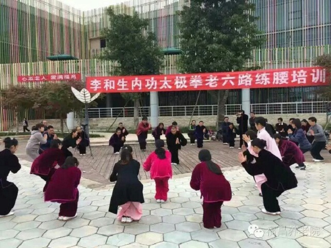 近日,嘉陵江南岸福昌养老院训练场红色横幅格外引人注目“开心练拳,快乐健身,美丽人生”。这里聚集了50余名太极友人,福建拳友庄锡成先生应邀来苍溪开展李和生内功太极拳老六路交流培训活动,参训学员分别来自吉林通化、甘肃天水、重庆、四川乐山和苍溪县域的拳友。培训活动形式多样,内容丰富,教学灵活。拳理讲座深入浅出,引导拳友了解太极,认识太极。动作辅导简单易学,要点讲解简明扼要,心法口令直截了当,引导拳友以心行意,用腰盘拳。集中教学,分组辅导,个别交流,引导拳友体会拳架、体悟拳理、感悟太极。短短四天培训,参训拳友体会万般,亲身体验了传统太极养生之神奇乐趣。