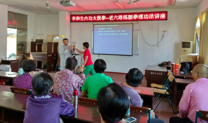 2017年10月21日上午,庄锡成先生应邀到泉州市鲤城区老年大学开展李和生内功太极拳老六路练腰讲座交流。来自晋江市、南安市、丰泽区、市直单位和鲤城区等地拳友共50余人参加。泉州市太极拳协会李和生老六路研究会副会长黄淑亮先生、顾问许贻菲女士莅临活动现场关心指导。 庄锡成先生利用多媒体方式,系统解读相关拳理拳论,分析讲解了练习内功太极拳老六路常见的盲区、误区,并通过现场互动,示范如何拱腰、撤腰和脊柱放松功等功法,对如何用腰盘拳进行示范引导,让参训拳友亲身体会太极拳内运外动功态感觉,进一步增强对太极拳练腰重要性的认识,了解掌握老六路练腰的基本方法和要点。拳友们深感受益匪浅。