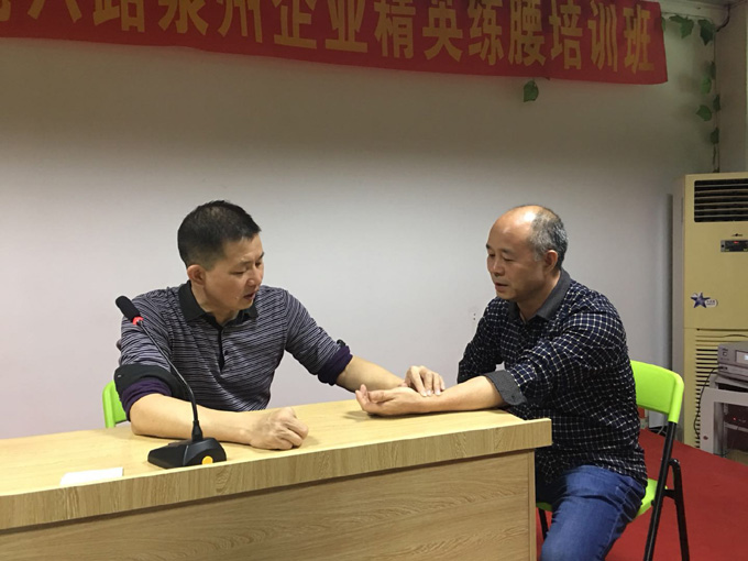 2017年11月5日下午,泉州“企业精英”班特邀民间中医刘才富先生莅临义务开展中医养生讲座。 刘医生引经据典,简要解读《黄帝内经》中医养生理论,借鉴古代养生分析现代养生问题,结合临床经验剖析生活中常见的防病治病案例,比较中西医诊病治病利弊。同时,针对企业界人士的工作生活习惯,提出“清淡饮食、清心、早睡、多吃苹果”的生活方式,提倡“慢运动”,鼓励练习太极拳。 讲座期间,刘医生还开展互动问诊,让拳友们递纸条提问题,逐个答疑解惑。同时,现场把脉诊病,开方调理。拳友们认真听讲,积极参与,深感受益匪浅。 中医养生讲座得到福建泉州和润培训教育机构的大力支持,特此致谢!