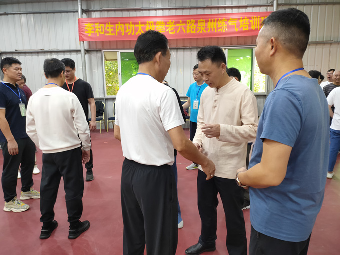 2021年11月上旬,庄锡成先生利用周末双休在福建泉州义务举办一期李和生传内功太极拳老六路练气培训班,来自上海、湖南、广东、云南、江西、浙江和福建福州、厦门、漳州、泉州等地拳友32人参加。 庄锡成老师利用多媒体课件开展了李和生传内功太极拳老六路《如何练气》拳理功法讲座,充分运用大自然现象诠释“气沉丹田”“气宜鼓荡”拳理,揭示内功太极拳“内气”的实质、特性和运行规律,详解三丰祖师“敛神聚气论”经典理论要义,系统传授恩师李和生武学体系之“以气带手”功法和行拳要领,深刻领悟练气阶段“腾笼换鸟”的深刻含义,不断感知体会如何将“力气”转化为“内气”,将“力量”转化为“能量”。庄老师还安排培训活动全过程视频群直播,让线下学员拳友共同分享培训内容,深受拳友欢迎。 参训拳友深感收获颇多,感触深刻。短短三天的培训活动,充满着团结、学习、友谊的氛围。老师倾囊相授,教练细心辅导,拳友真诚交流。拳友感到“内功不再难,内气不再玄”。表示一定认真按照老师的教学计划勤奋练习、认真感知体悟、真诚交流分享,让更多拳友走上正确的太极修炼之道。培训喜添新徒湖南周小平。 培训活动得到泉州湖美大酒店的大力支持,在此特表谢意!